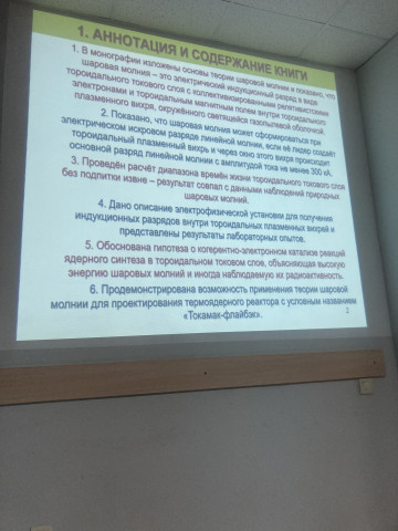 Власов Александр Николаевич, доктор технических наук, профессор кафедры общей и экспериментальной физики представил выпускникам свою новую монографию «Шаровая молния и ядерный синтез»
